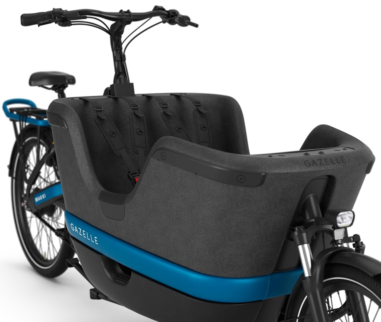 Gazelle Cabby 380 został zaprojektowany jako elektryczny rower cargo do przewozu dzieci, dlatego bezpieczeństwo i stabilność odgrywają tu kluczową rolę. Solidna rama, sztywna konstrukcja tylnego bagażnika oraz możliwość montażu dedykowanych fotelików i akcesoriów sprawiają, że dzieci podróżują w wygodnej i bezpiecznej pozycji, a rodzic zyskuje pełną kontrolę nad rowerem.