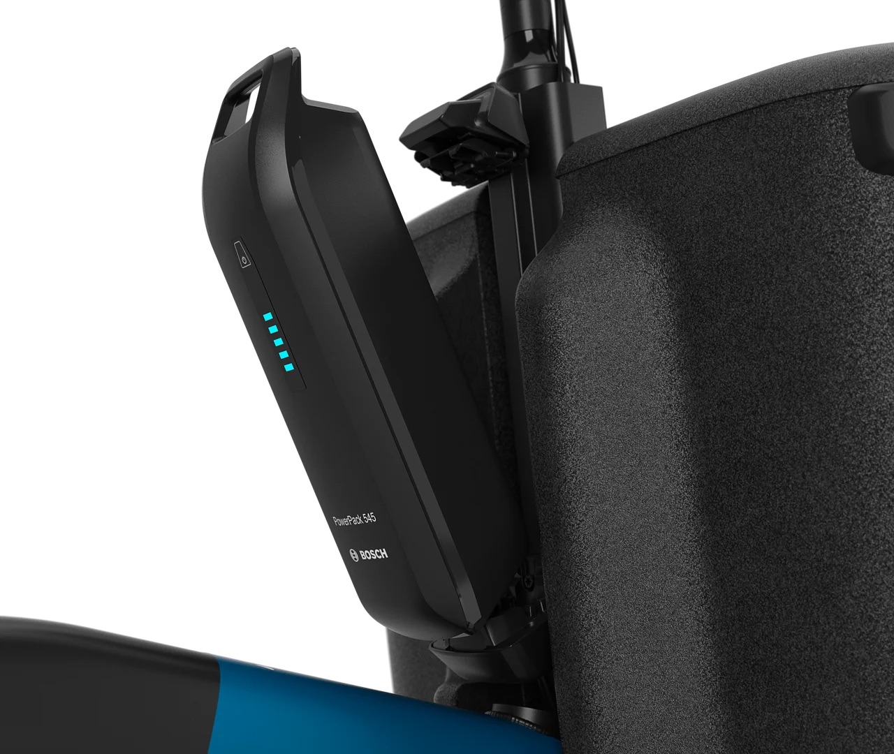 Sercem roweru jest silnik Bosch Cargo Line, zaprojektowany specjalnie do elektrycznych rowerów cargo i rowerów towarowych. Zapewnia on dynamiczne, ale płynne wspomaganie, które sprawdza się zarówno podczas ruszania z miejsca, jak i na podjazdach z dziećmi i bagażem na pokładzie. Zintegrowana bateria Bosch oferuje duży zasięg i niezawodność, a jej dyskretne umiejscowienie w ramie podkreśla elegancki, minimalistyczny charakter roweru.
