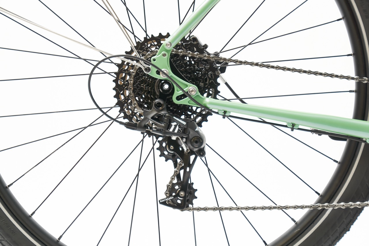 Cargo V3 oferuje różne konfiguracje napędu – od klasycznego SRAM Apex 11-speed, poprzez Shimano Alfine 8 z napędem paskowym Gates, aż po Shimano 1×11 z łańcuchem.