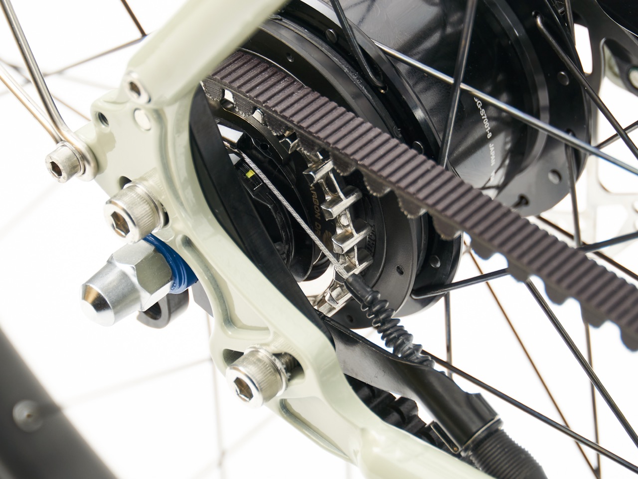 - Shimano Alfine 8 z paskiem Gates – trwałość i minimalna obsługa,