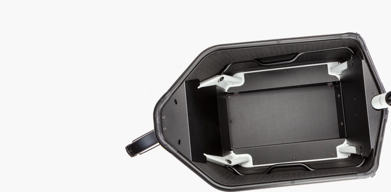 Przednia skrzynia transportowa została zaprojektowana jako integralna część konstrukcji. Jej maksymalny udźwig sięga około 100 kg, co pozwala komfortowo przewozić nawet trójkę dzieci lub duże zakupy, a nisko położony środek ciężkości daje stabilność podczas jazdy.