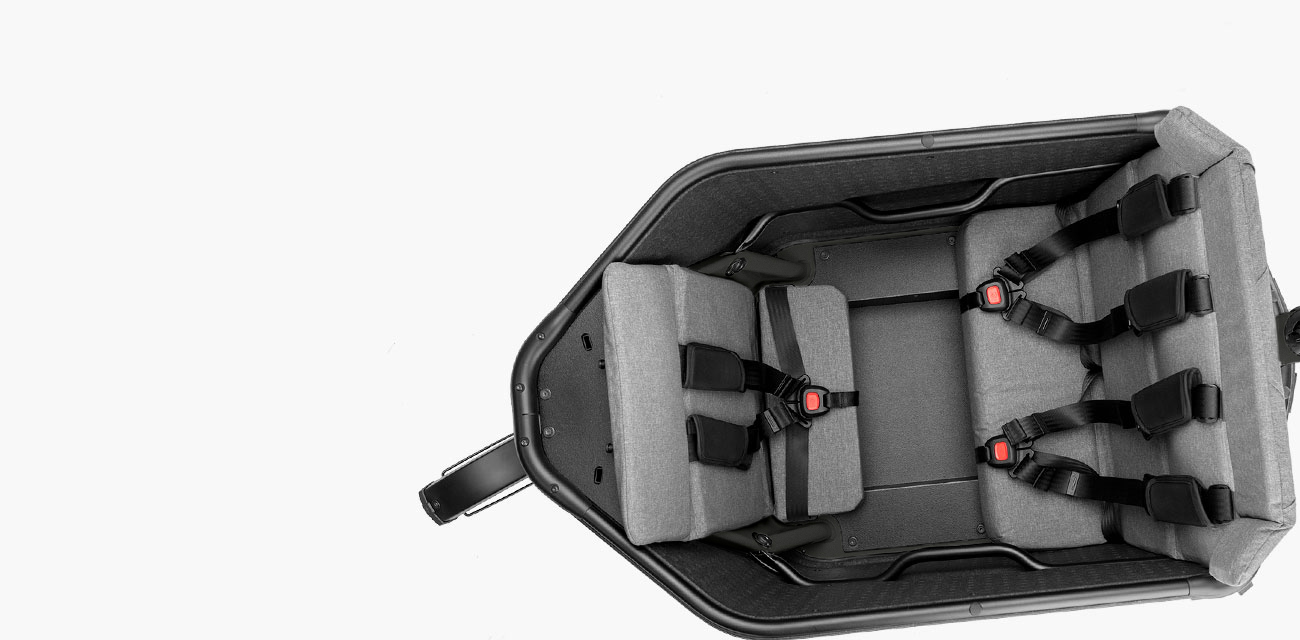 Przednia skrzynia transportowa została zaprojektowana jako integralna część konstrukcji. Jej maksymalny udźwig sięga około 100 kg, co pozwala komfortowo przewozić nawet trójkę dzieci lub duże zakupy, a nisko położony środek ciężkości daje stabilność podczas jazdy.