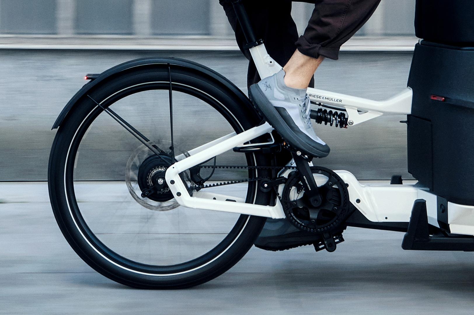 Centralna rama o niskim przekroku została zaprojektowana z myślą o maksymalnej sztywności i kontroli, nawet przy pełnym obciążeniu skrzyni. Charakterystyczna dla Packstera geometria sprawia, że rower prowadzi się przewidywalnie i pewnie, niezależnie od prędkości czy warunków drogowych.